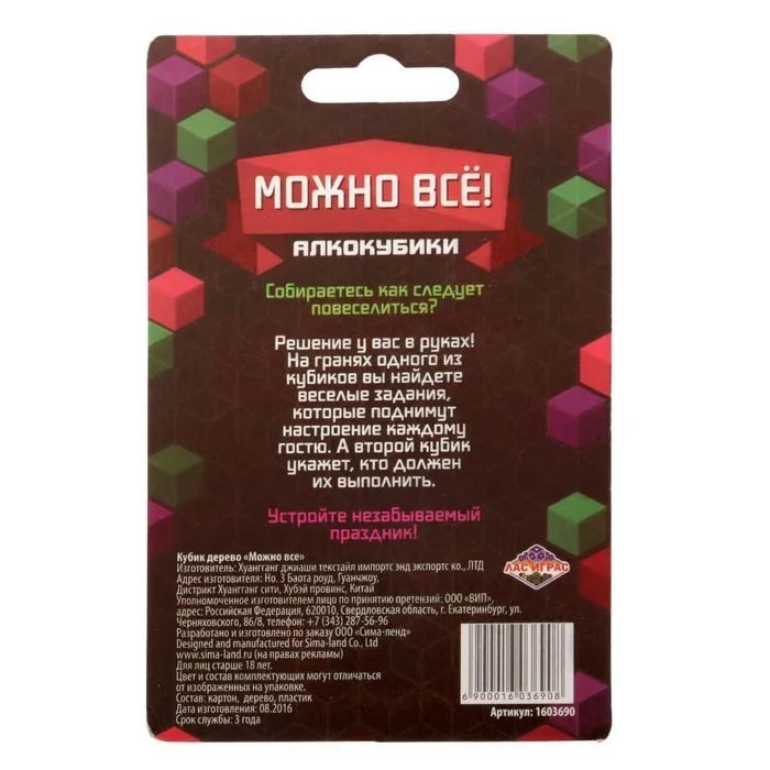 Купить кубик "можно все", алкокубики для принятия решений от 60 руб. с доставкой до пункта выдачи в Нижнем Тагиле. Интернет магазин ДекаМаркет. Оплата при получении.